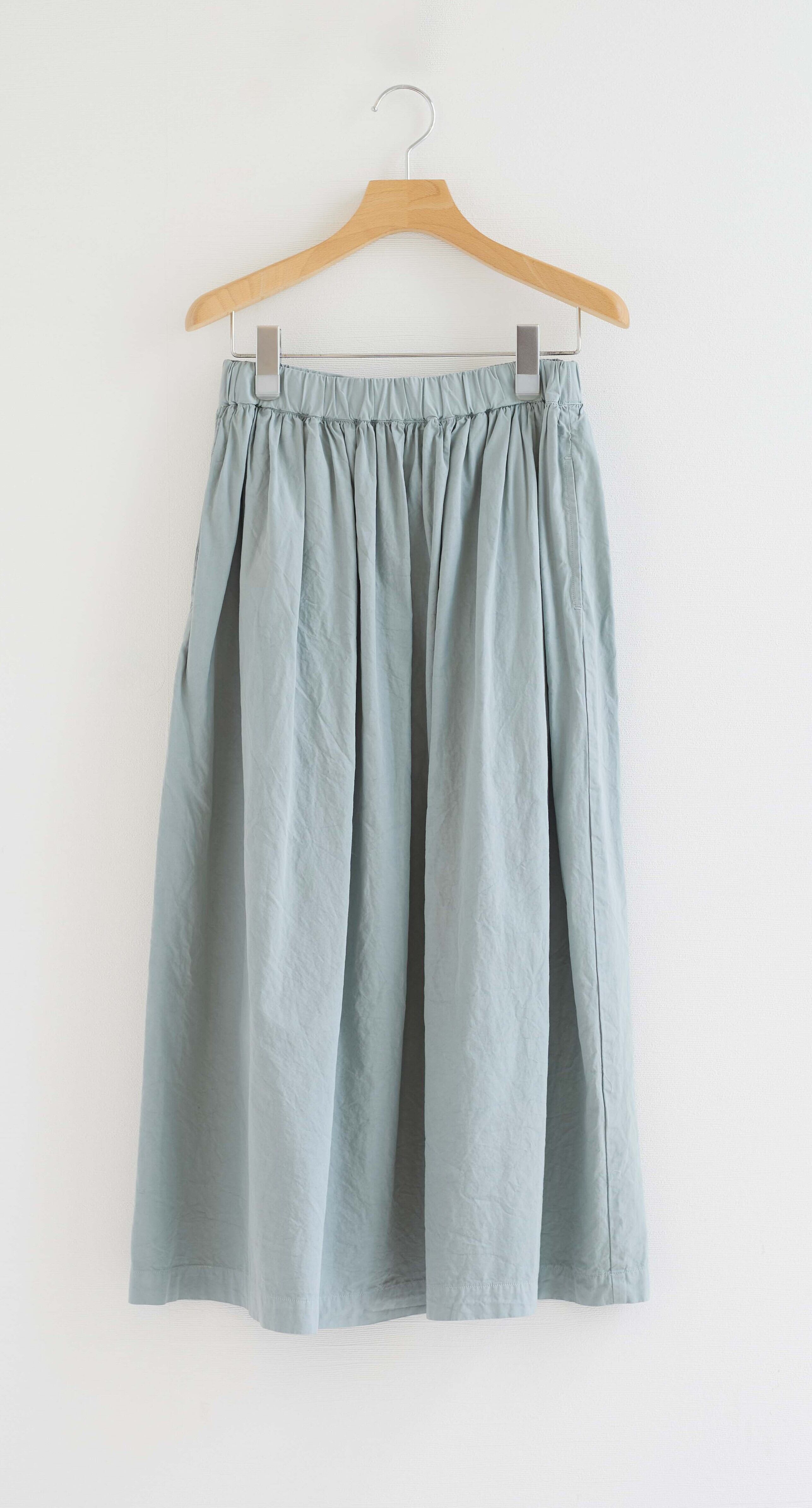 holkから、SKIRTが入荷しました。プリーツを多用したボリュームが美しいロングスカート。ハリとコシのある肌離れの良い涼しげな質感のコットンを使用した軽快な着用感が特徴。、ウェストにゴム入りドローコードを仕込み少し大きめでも絞って調整できます。両サイドにポケット付き。
