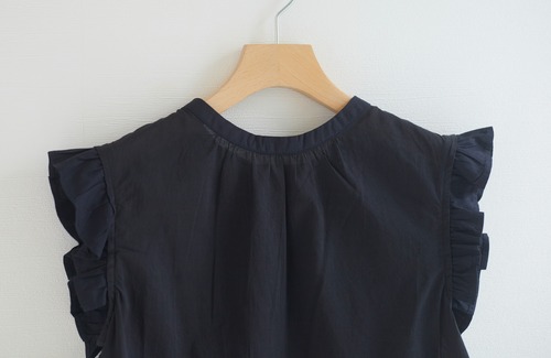 スカラップモチーフが特徴のノースリーブブラウスです。