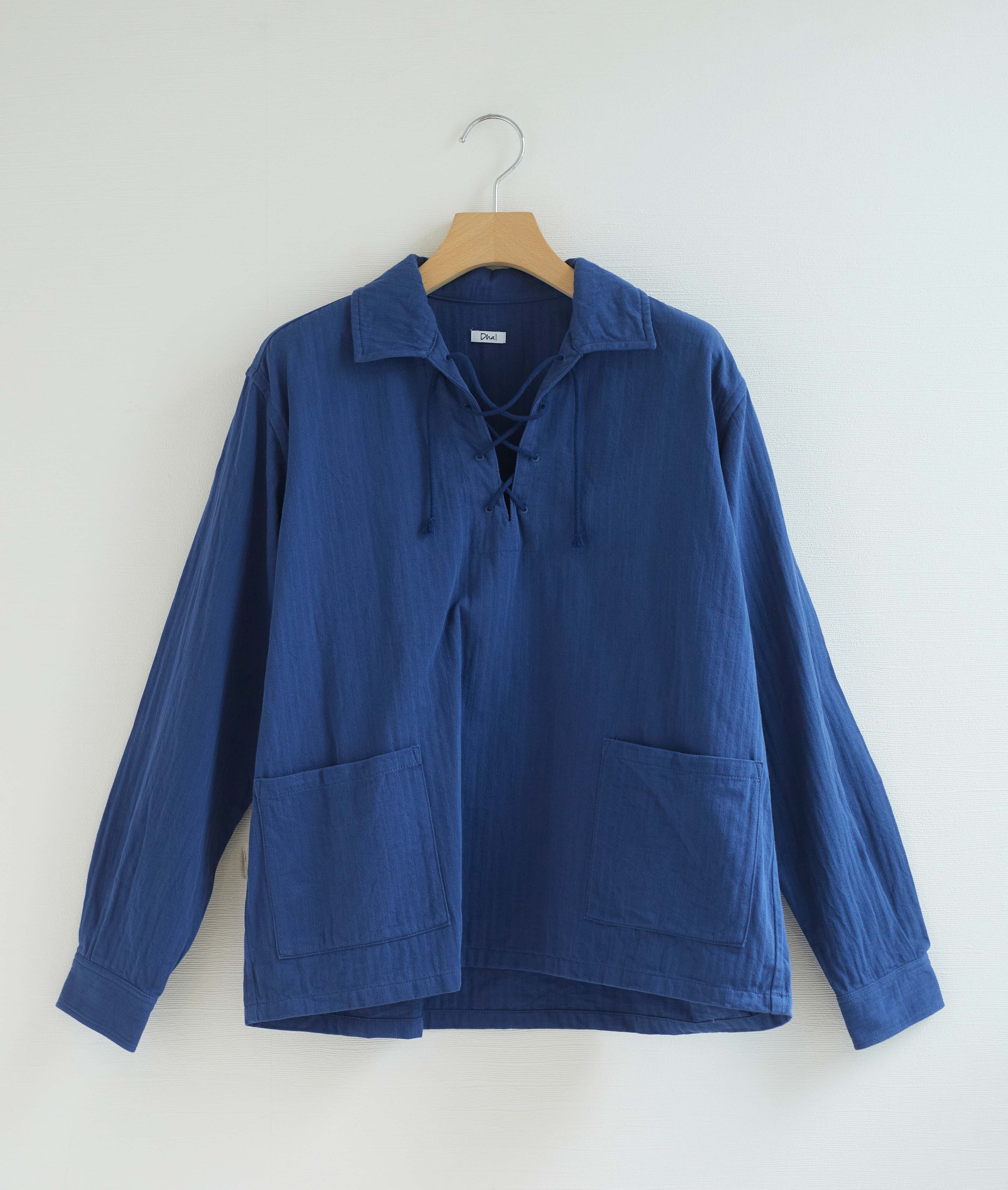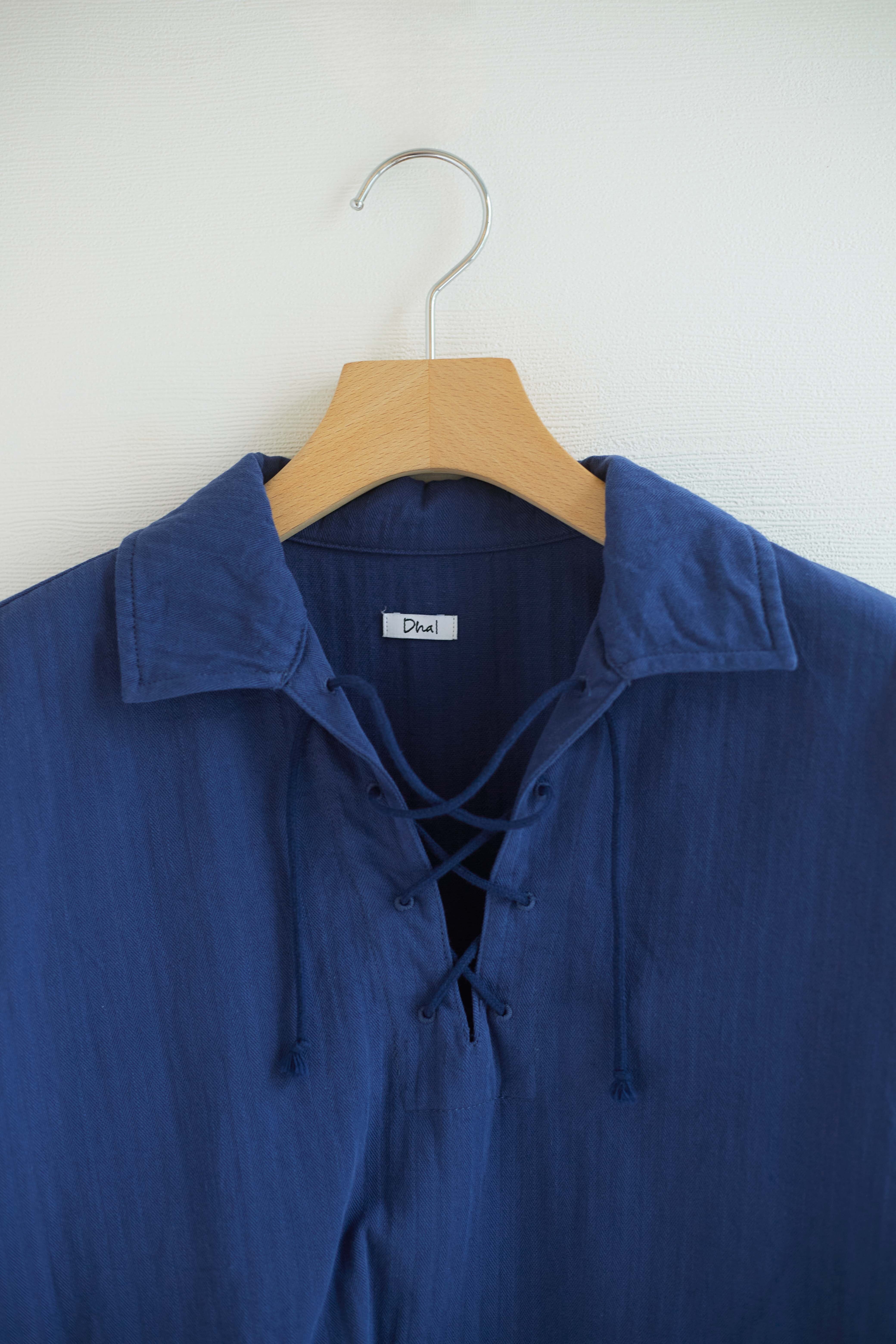 Home > Dhal(ダル) / 1950German Regular Herringbone Lace Up Shirt / ブルー
