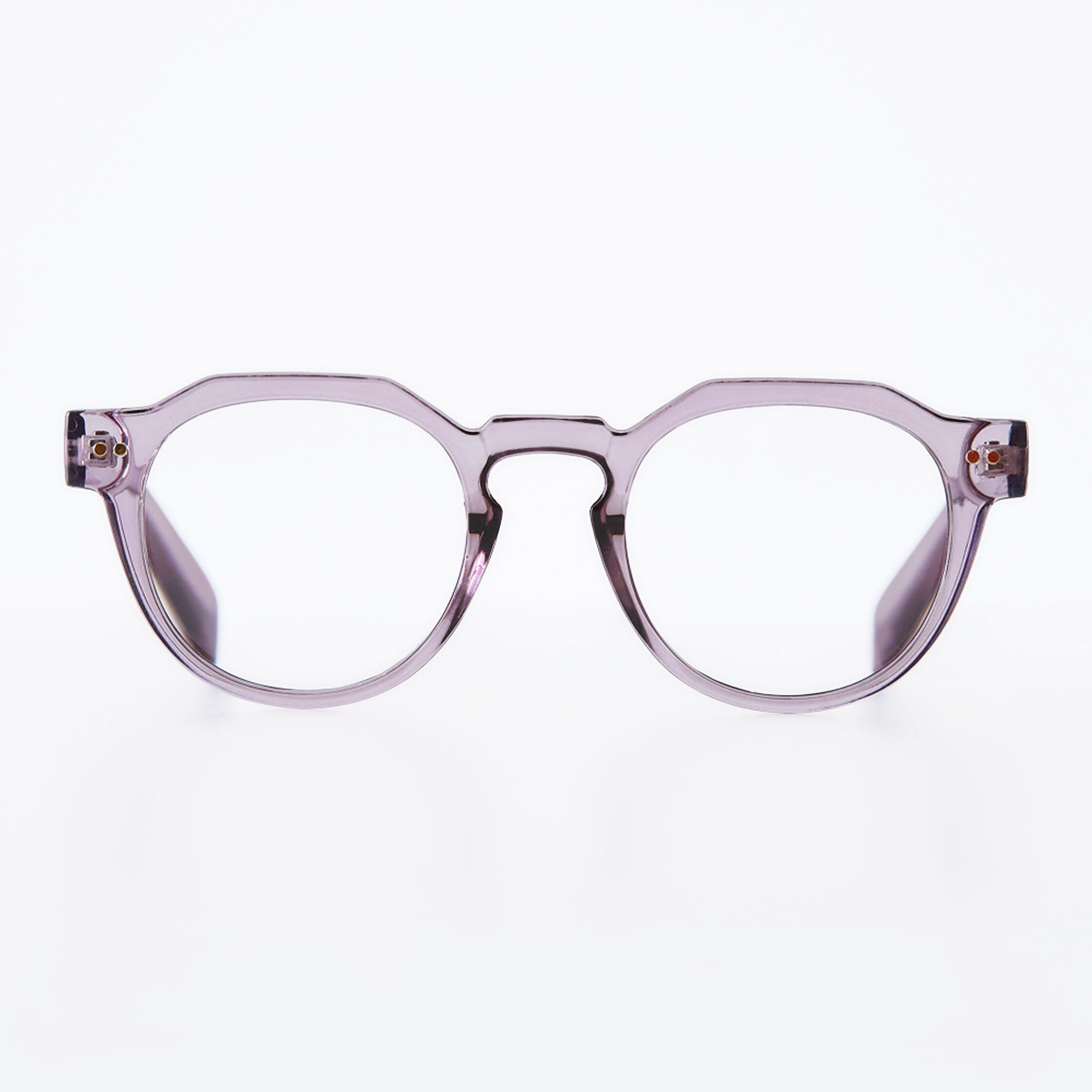 鮮やかなクリアフレームが肌色をほんのり透かし、自然な華やぎをプラス。表情を豊かに、顔周りを明るく見せたい方へおすすめ。